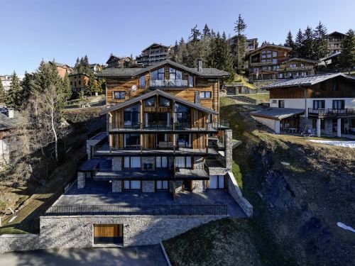 De gloednieuwe mooie en moderne résidence L’Orée du Bois bestaat uit vijf verdiepingen waar zes grote appartementen smaakvol zijn ingericht in een eigentijdse stijl waar hout grotendeels de boventoon voert, gecombineerd met een luxe uitstraling. De résidence heeft een gunstige en rustige ligging tussen de wijk l’Orée en het centrum van La Rosière.